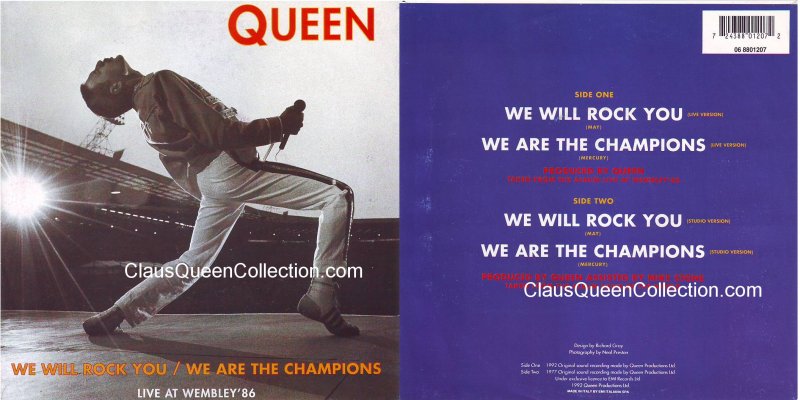 – 1992 – We Will Rock You / We Are The Champions – (live at Wemb.) – (Holland EMI 8801207) LABEL