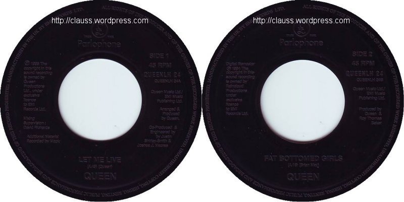 – 1995 – Let Me Live / Fat Bottomed Girls – (UK QUEENLH 24 – promo no p/s)