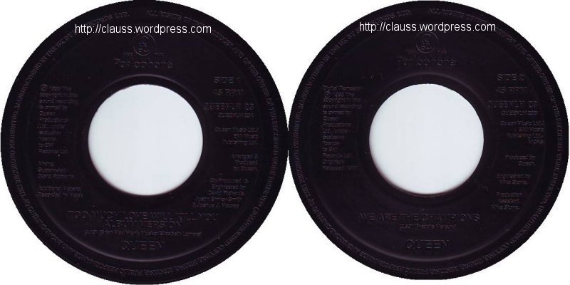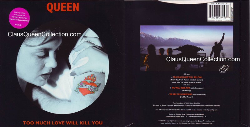 – 1995 – Too Much Love Will Kill You / We Are The Champions – (UK QUEENLH 23 – promo no p/s)