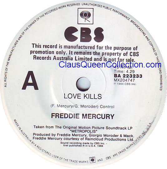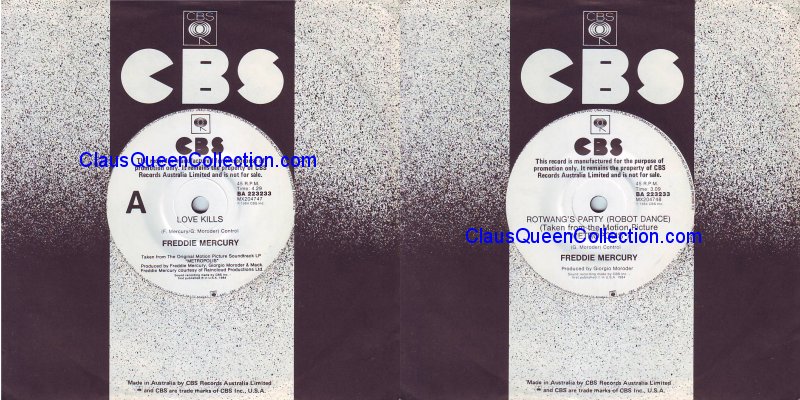 Australia – 1984 – Love Kills / Rotwang’s Party – (Australia CBS BA 223233 – promo no p/s) LABEL