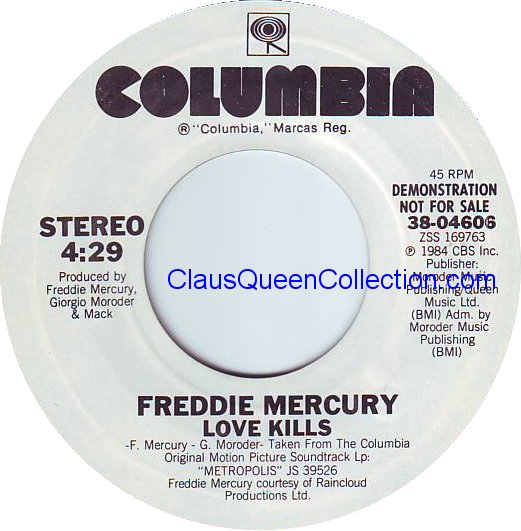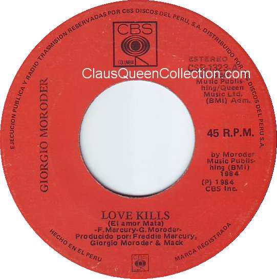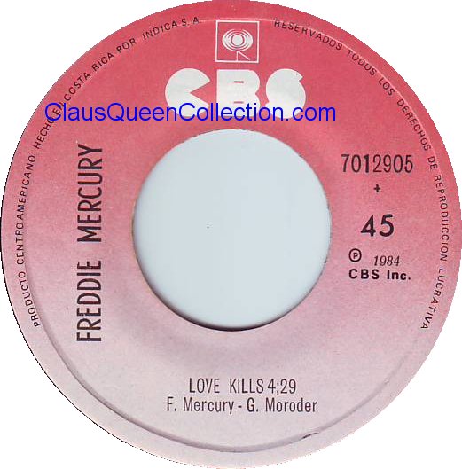 Ecuador – 1985 – I Was Born To Love You / Love Kills – (Ecuador CBS 133-0107 – no p/s) LABEL