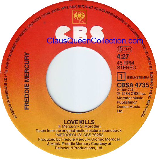 Holland – 1984 – Love Kills / Rotwang’s Party – (Holland CBS A-4735) LABEL