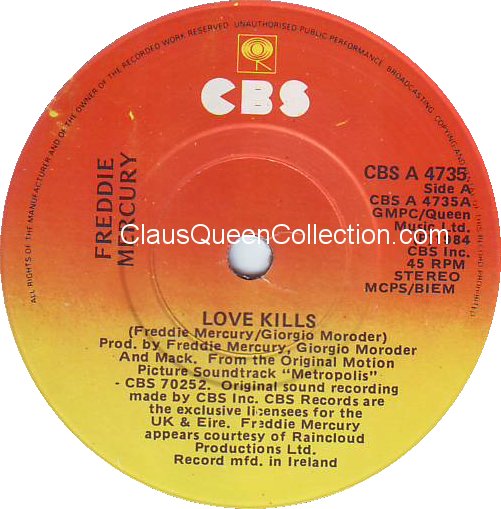 UK – 1984 – Love Kills / Rotwang’s Party – (UK CBS A 4735) LABEL