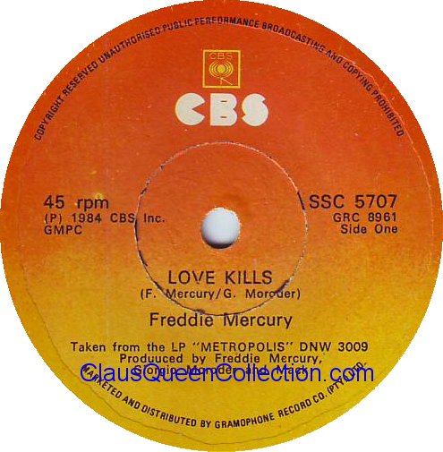 – 1984 – Love Kills / Rotwang’s Party – (Costa Rica CBS 7012905 – no p/s) LABEL