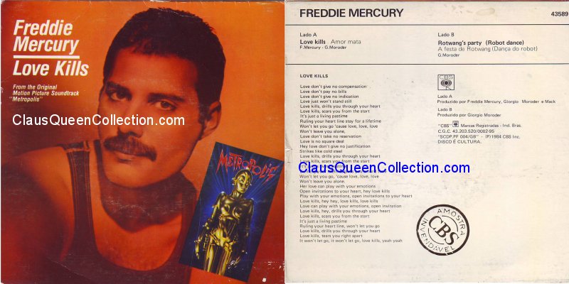 Brazil – 1984 – Love Kills / Rotwang’s Party – (Brazil CBS 43589 – promo) LABEL