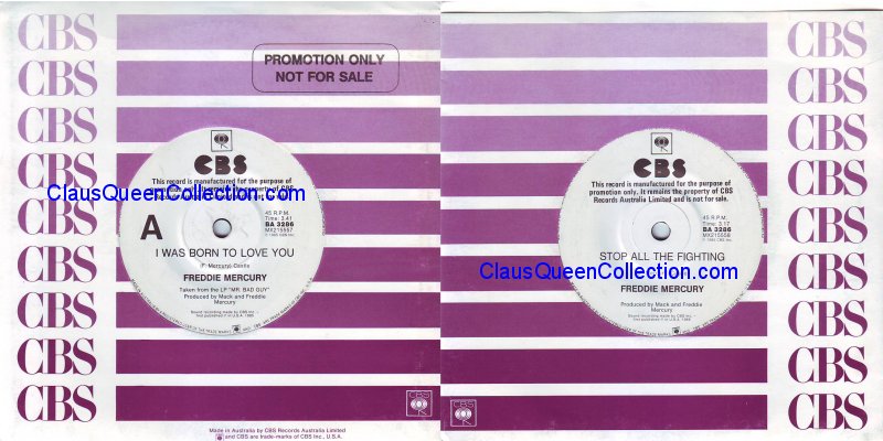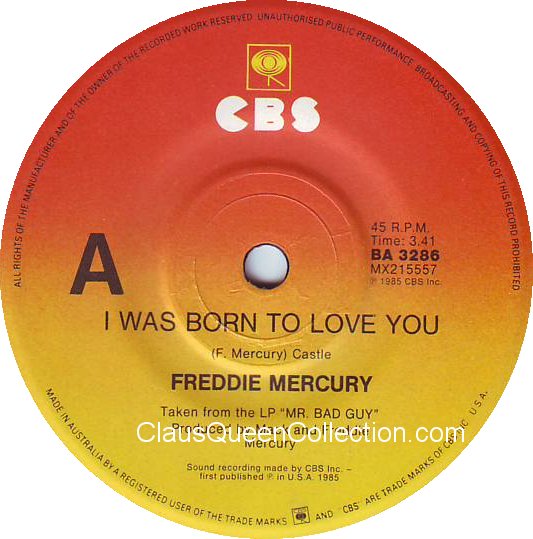 Australia – 1985 – I Was Born To Love You / Stop All The F. – (Australia CBS BA 3286 – promo no p/s) LABEL