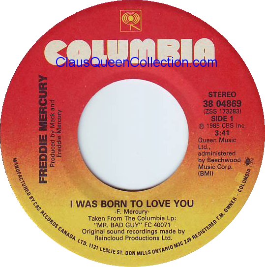 Canada – 1985 – I Was Born To Love You / Stop All The Fighting – (Canada CBS 38 04869) LABEL