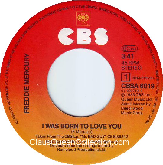 Holland – 1985 – I Was Born To Love You / Stop All The Fighting – (Holland CBS A 6019) LABEL