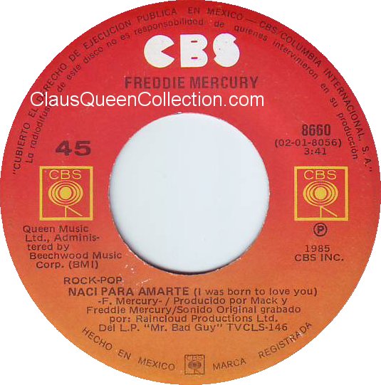 Mexico – 1985 – I Was Born To Love You / Stop All The Fighting – (Mexico CBS 8660 – no p/s) LABEL