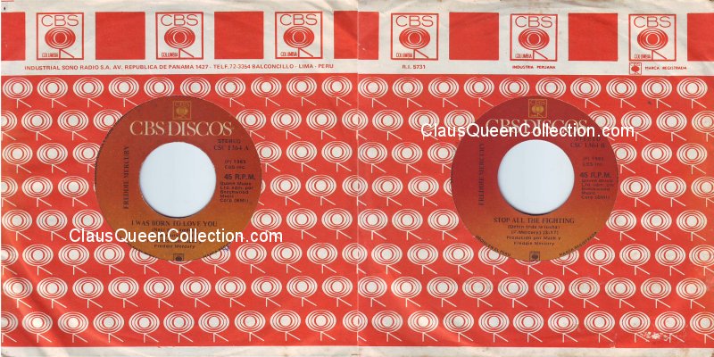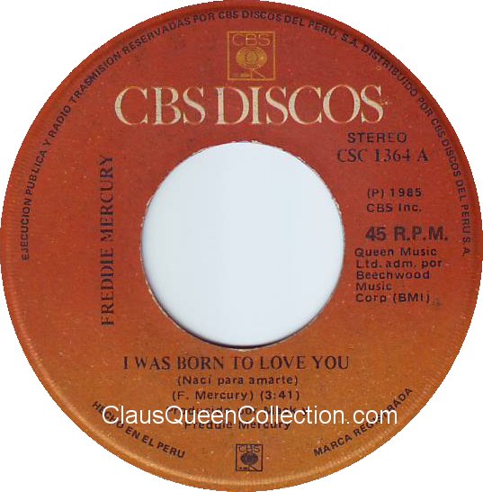 Perù – 1985 – I Was Born To Love You / Stop All The Fighting – (Perù CBS CSC 1364 – no p/s) LABEL