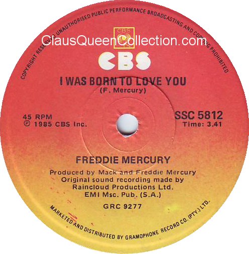 – 1985 – I Was Born To Love You / Stop All The Fighting – (Zimbabwe CBS SSC 5812 – no p/s) LABEL