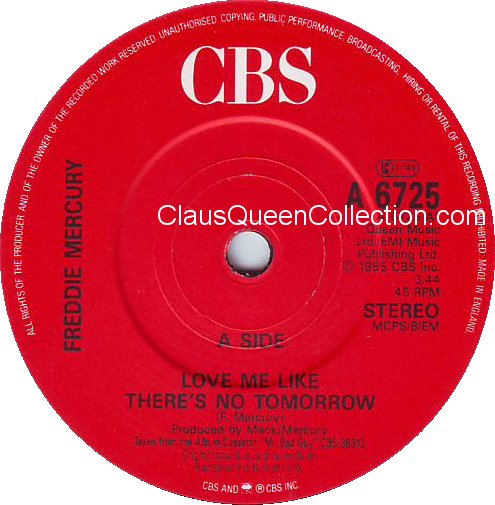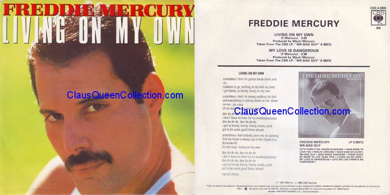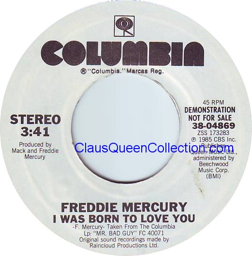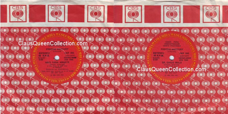 Argentine – 1985 – I Was Born To Love You / Mr. Bad Guy – (Argentina CBS DEP 395 – promo no p/s) LABEL