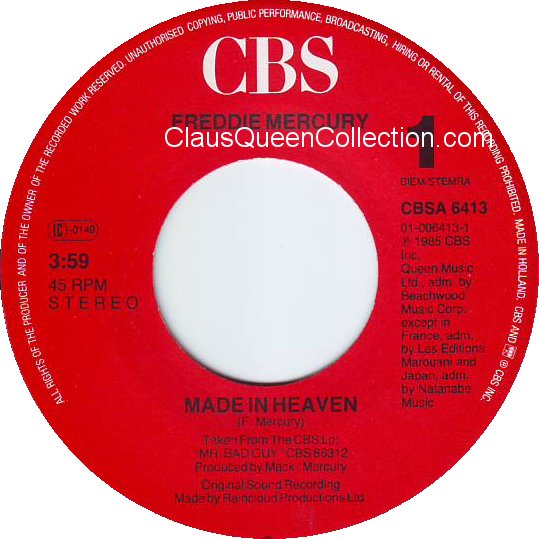 Holland – 1985 – Made In Heaven / She Blows Hot And Cold – (Holland CBS A 6413 – remix) LABEL
