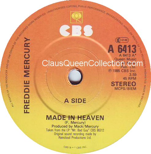 UK – 1985 – Made In Heaven / She Blows Hot And Cold – (UK CBS WA 6413 – shaped disc)