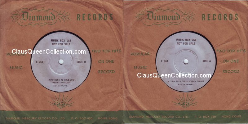– 1985 – I Was Born To Love You /A View To A Kill (D. Duran) – (Malaysia E 343 – JB no p/s) LABEL