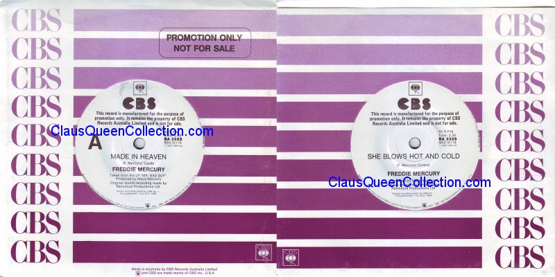 Australia – 1985 – Made In Heaven / She Blows Hot And Cold – (Australia CBS BA 3325 – promo no p/s) LABEL