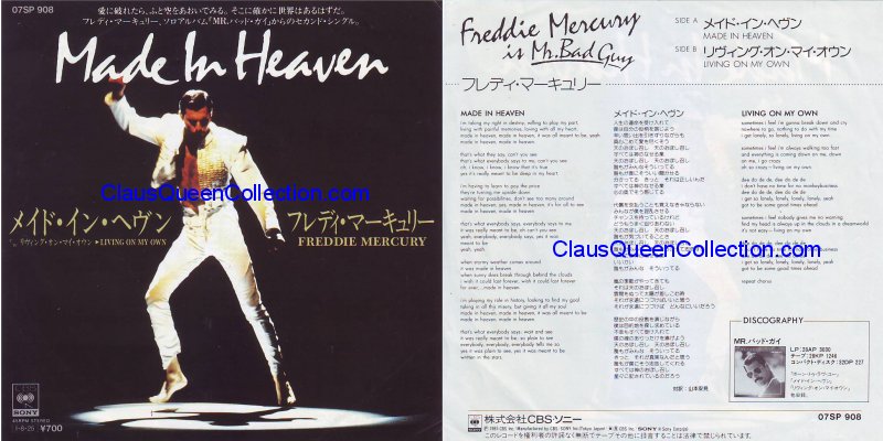 Japan – 1985 – Made In Heaven / Living On My Own – (Japan CBS 07SP 908 ) LABEL
