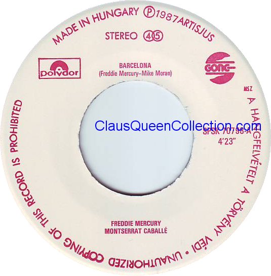 Hungary – 1987 – Barcelona / Exercises In Free Love – (Hungary Polydor SPSK 70798) LABEL