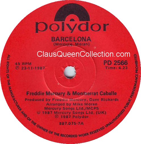 UK – 1987 – Barcelona / Exercises In Free Love – (UK Polydor POPS 887) LABEL