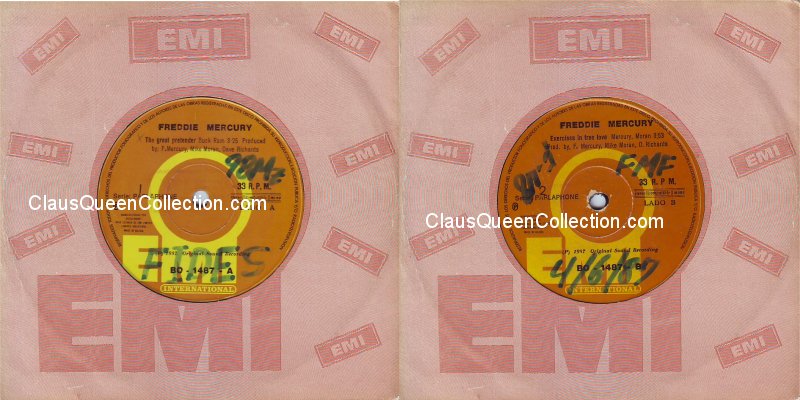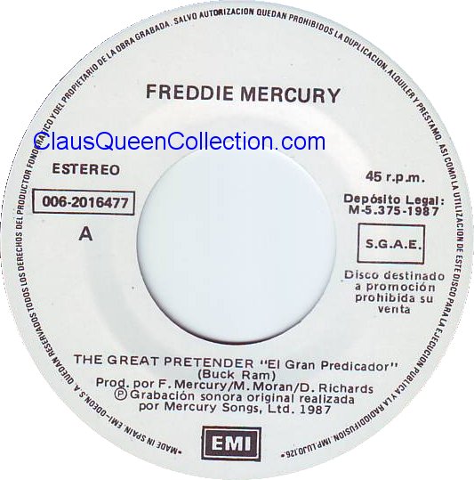 Spain – 1987 – The Great Pretender / Exercises In Free Love – (Spain EMI 006-2016477 – promo) LABEL