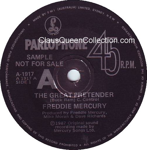 Australia – 1987 – The Great Pretender / Exercises In Free Love – (Australia EMI A-1917 – promo) LABEL