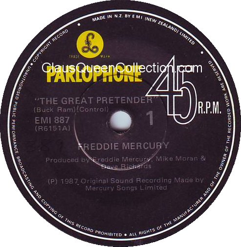 New Zeland – 1987 – The Great Pretender / Exercises In Free Love – (New Zeland EMI 887 – no p/s) LABEL