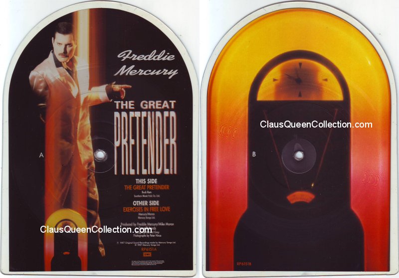 UK – 1987 – The Great Pretender / Exercises In Free Love – (UK EMI RP 6151 – shaped disc)
