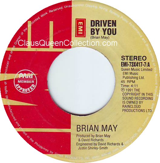Philippines – 1991 – Driven By You / Just One Life – (Philippines EMI-73X417 – 7 – no p/s) LABEL
