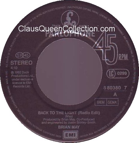 Germany – 1992 – Back To The Light / Nothin’ But Blue – (Germany Parlophone 8 803807) LABEL