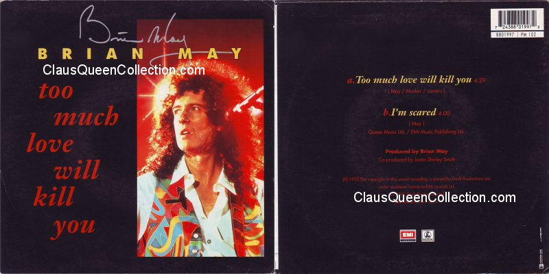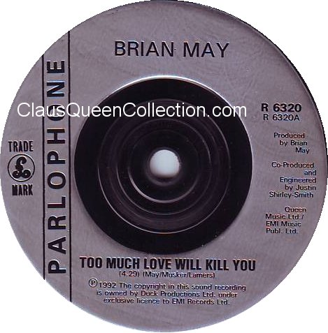 – 1992 – Too Much Love Will Kill You / I’m Scared – (UK Parlophone R 6320) LABEL
