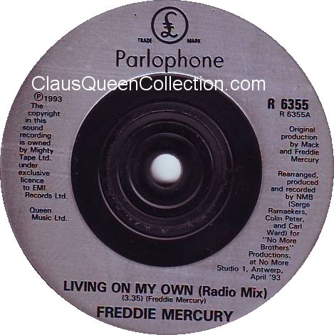 UK – 1993 – Living On My Own (Radio mix) / Living On. (Album mix) – (UK Parlophone R 6355) LABEL