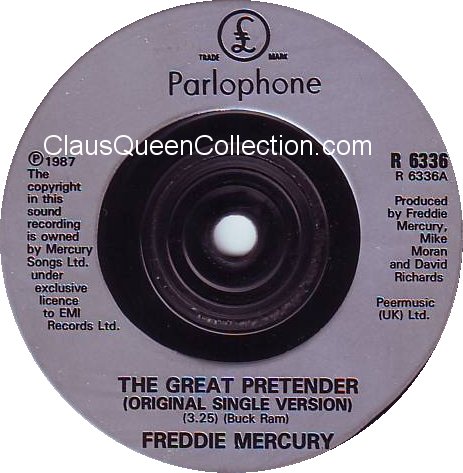UK – 1987 – The Great Pretender / Exercises In Free Love – (UK EMI R 6151) LABEL