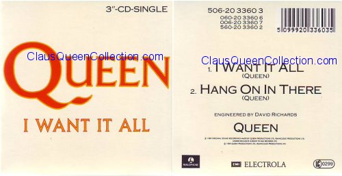 I Want It All – (Austria 1989 – 2 tracks – 3 inch) SOLD
