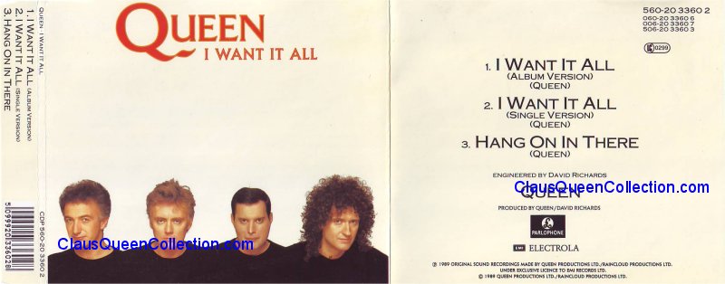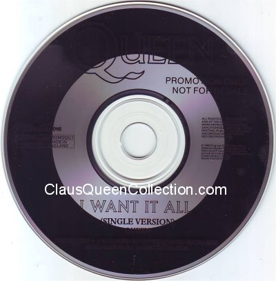 I Want It All – (UK 1989 – CDPROMOQU 1 – promo 1 track)