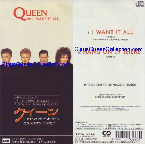 I Want It All – (Japan 1989 – 2 tracks – 3 inch) SOLD