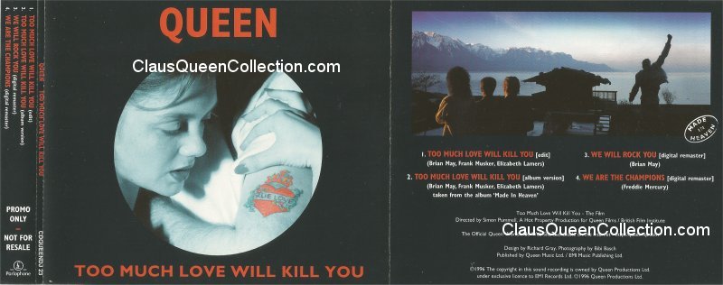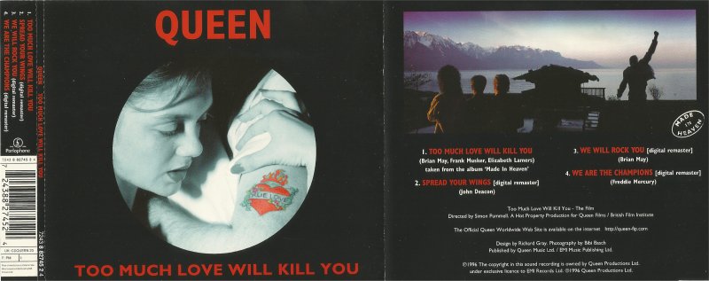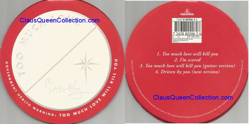 Too Much Love Will Kill You – (UK 1992 Parlophone CDRS 6320 – 4 tracks – Red Pill digipack) SOLD