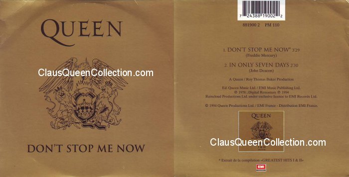 Don’t Stop Me Now – (France 1994 EMI SPCD 1796 – promo 1 track) SOLD